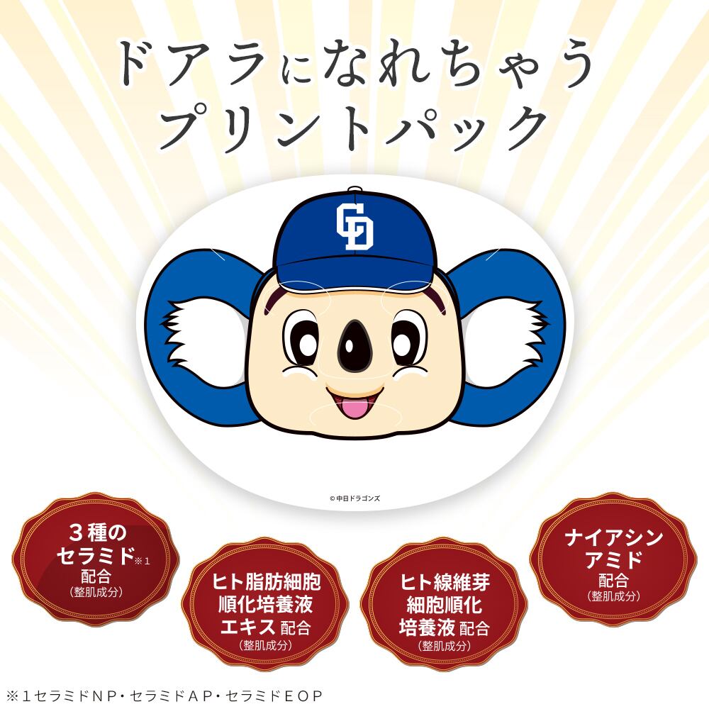 かわいいドアラの顔が全面にプリントされたフェイスパック。